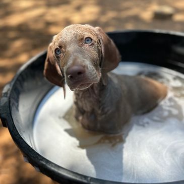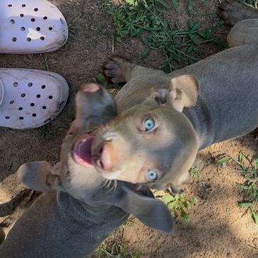 We took some individual puppy pictures today! Contact us for more info on the puppies. We have adopted our philosophy from our mentors @ Full Circle Weims and do a puppy placement program. We feel the puppy and owner are both happier when they are matched vs picking the 'cutest' puppy. It really is a phenomenal concept.